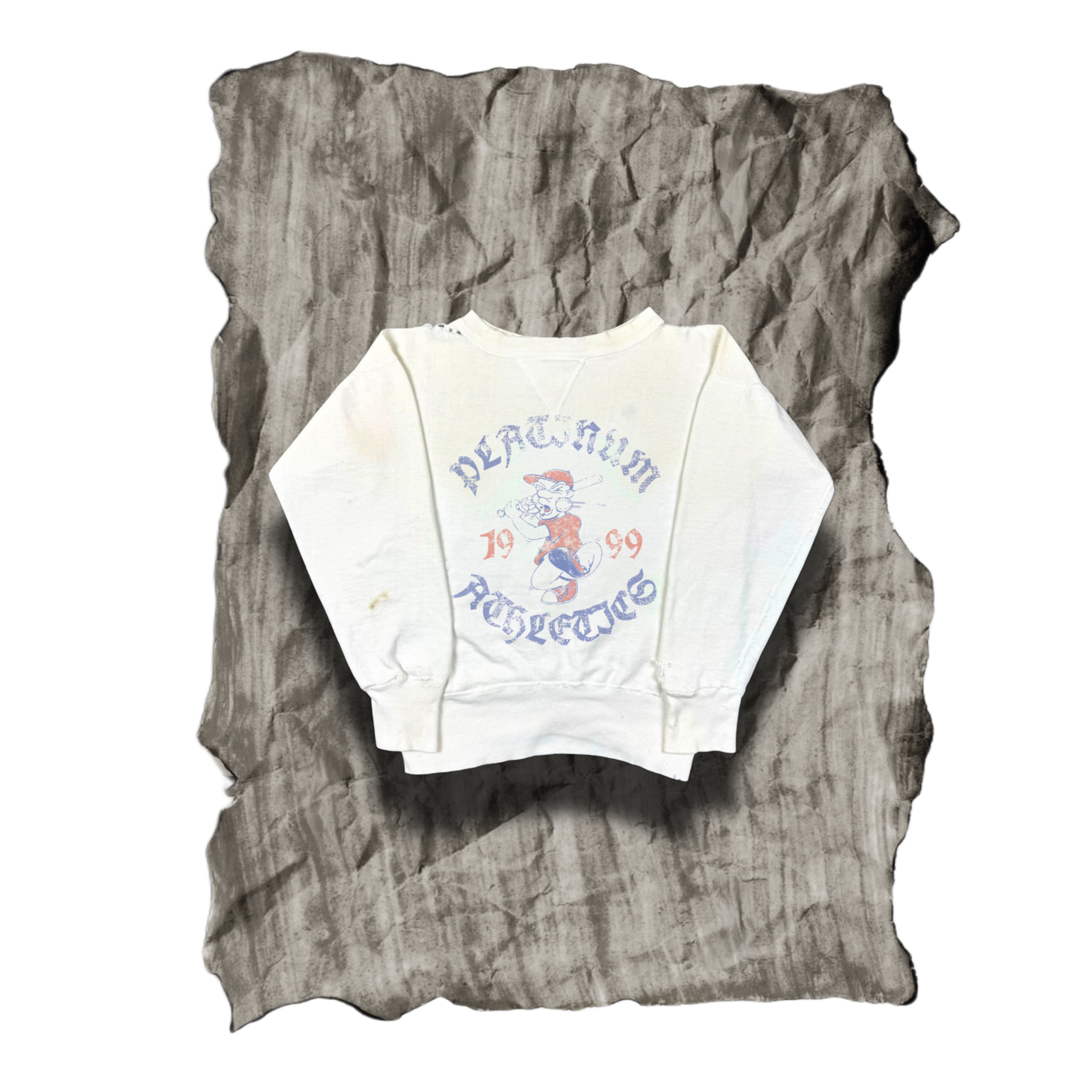 Heavyweight crewneck sweatshirt, distressed neckline and cuffs with our new logos on the front, and back. Comfortable material and fits true to size. Size up if looking for an oversized fit!